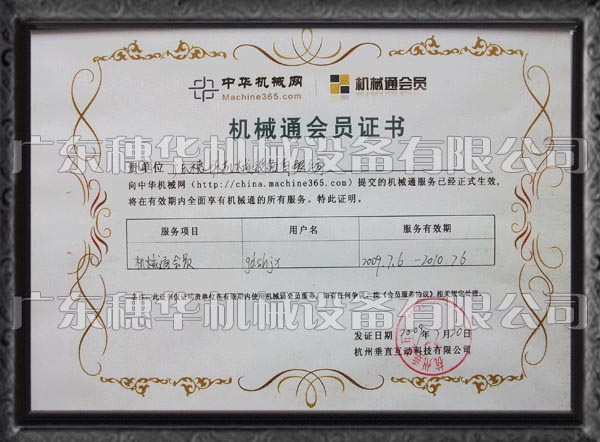 中華機(jī)械網(wǎng)榮譽(yù)會員證書